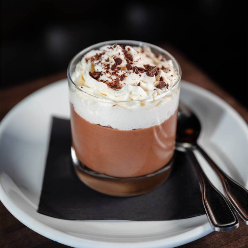 Dark chocolate mousse, fresh whipped cream, shaved chocolate